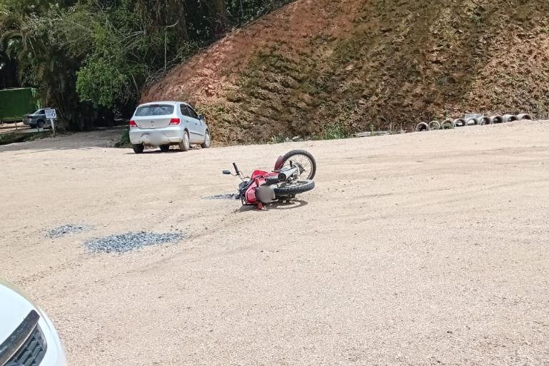 No local, os socorristas encontraram o condutor da motocicleta Honda CG Fan 150, de 36 anos, sentado fora da via, consciente e orientado. Ele havia retirado o capacete por conta própria e apresentava escoriações generalizadas nos braços e pernas, além de suspeita de fratura no dedo indicador da mão direita. Após limpeza e curativos nos ferimentos, a vítima foi encaminhada ao Hospital Azambuja.