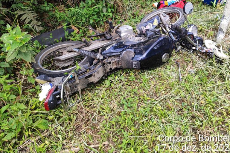 No local, as equipes constataram que se tratava de uma colisão entre uma motocicleta e um poste, resultando em duas vítimas. O condutor da moto, um homem com idade estimada entre 50 e 60 anos, foi encontrado inconsciente às margens da via. Ele apresentava politraumatismo, com lesões na cabeça, face, pelve e membros. O paciente foi intubado ainda no local pela equipe médica e encaminhado em estado grave ao Hospital Santa Isabel, em Blumenau, em ambulância do SAMU, com acompanhamento da equipe aeromédica do helicóptero Arcanjo-03.