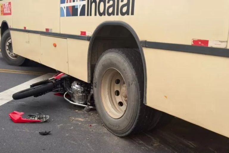 De acordo com o relato, não foi possível evitar a colisão. Após o impacto, o motociclista caiu ao solo, e a motocicleta permaneceu à frente do rodado traseiro esquerdo do ônibus.