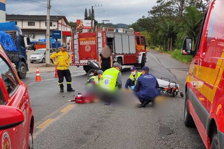 Um homem ficou ferido no fim da tarde desta segunda-feira (3) após um acidente de trânsito envolvendo uma motocicleta e um carro na Rua Hercílio Fides Zimmermann, no bairro Margem Esquerda, em Gaspar. O Corpo de Bombeiros foi acionado por volta das 17h07 para atender a ocorrência.