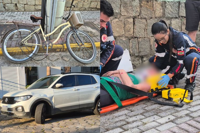 A colisão envolveu um automóvel Volkswagen T-Cross e uma bicicleta, ocupada por uma mulher de 45 anos e uma criança. O chamado para atendimento foi registrado às 18h06.