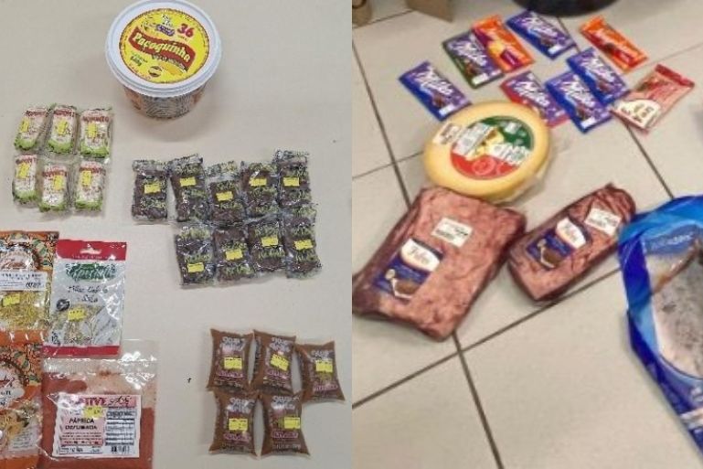 As câmeras flagraram o momento em que ela escondia alimentos em duas bolsas pessoais. O valor dos itens somou R$ 1.151,75.