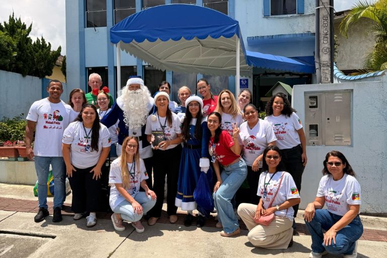 O projeto Natal Feliz Havan abriu oficialmente suas ações de 2025 com a entrega de presentes na Escola Charlotte, em Brusque (SC), realizada nesta quarta-feira, 26. A equipe de voluntários levou brinquedos e doces para as crianças e adultos atendidos pela instituição. A presença do Papai Noel trouxe ainda mais encanto ao momento, que movimentou alunos e colaboradores.