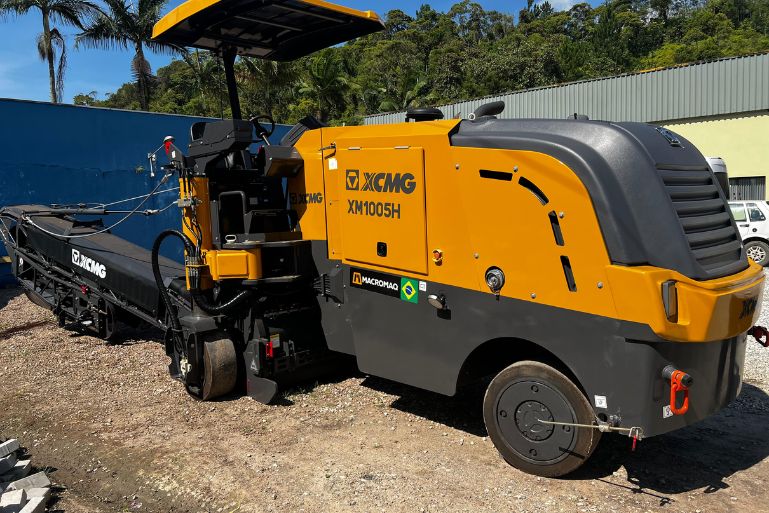 A fresadora de asfalto a frio tem a função de remover o asfalto antigo, permitindo a aplicação posterior de uma nova camada asfáltica. O equipamento pesa 13.500 quilos e possui largura de fresagem de 1 metro.