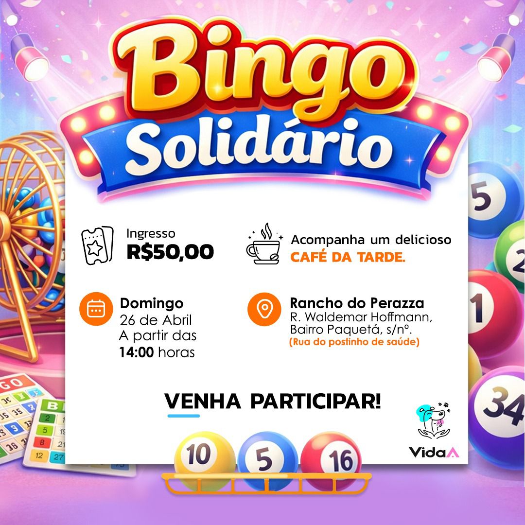O evento, intitulado “Bingo Solidário”, acontece no Rancho do Perazza, localizado na rua Waldemar Hoffmann, no bairro Paquetá, nas proximidades do postinho de saúde. A programação terá início às 14h.