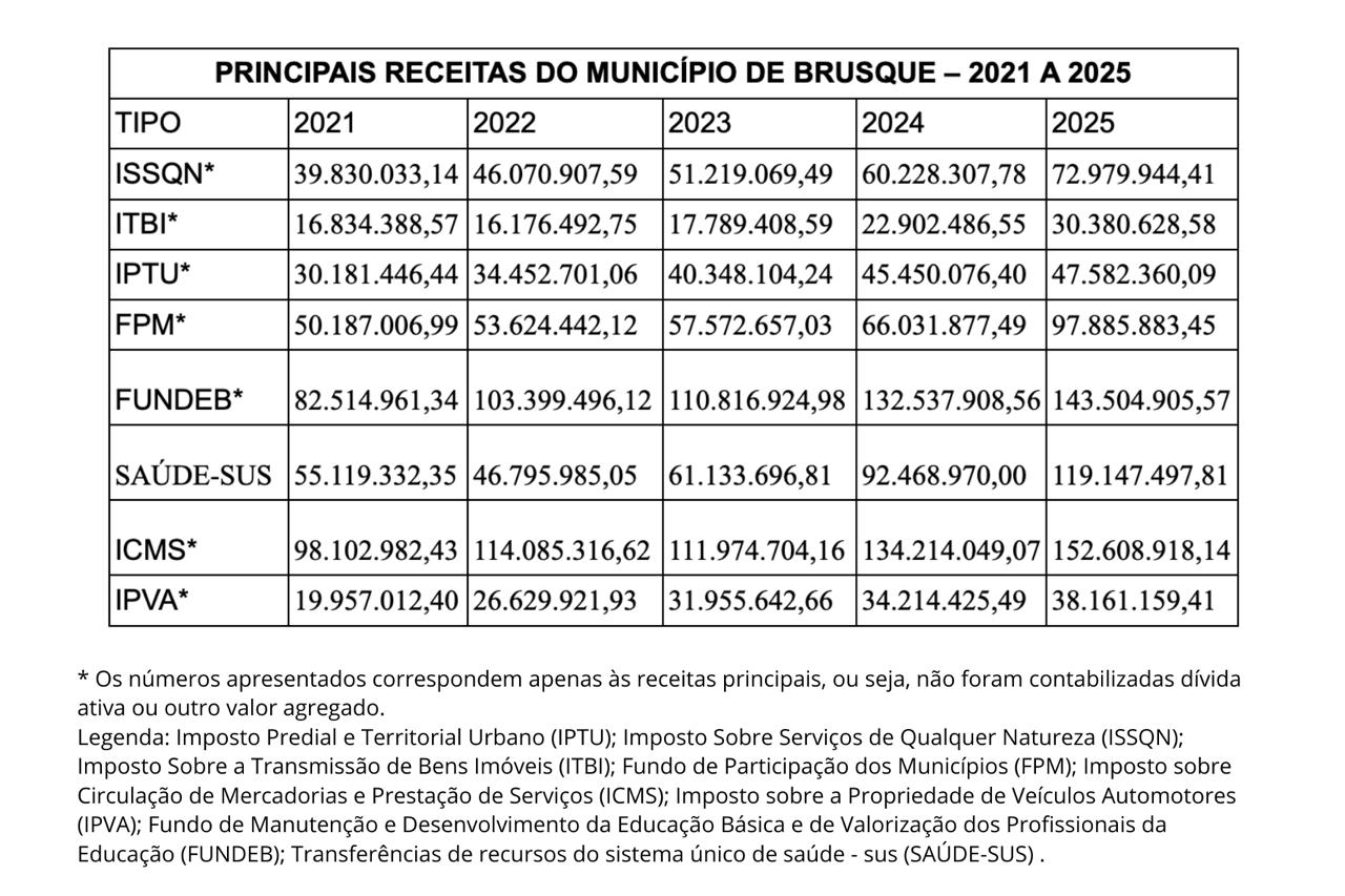 O Observatório Social de Brusque (OSB Brusque) compartilha o levantamento sobre a arrecadação de tributos municipais, com análise das principais fontes de receita da Prefeitura de Brusque no período de 2021 a 2025. O estudo tem como objetivo acompanhar a evolução dos recursos públicos ao longo dos últimos cinco anos.