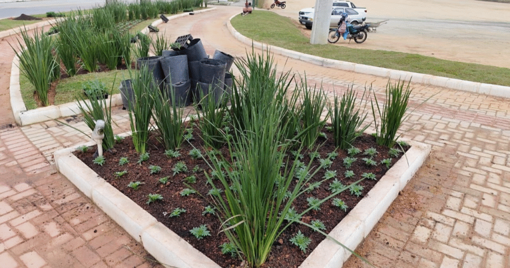 A nova área recebeu um cuidadoso trabalho paisagístico, com o plantio de espécies como Iresine, Clorofito, Tagetes, Impatiens e Moreia Branca, conferindo mais beleza e cor ao local. A execução deste serviço contou com o esforço conjunto de 15 trabalhadores, que atuaram durante uma semana com o apoio de um caminhão, um mini escavadeira (Mini PC), um bobcat e uma retroescavadeira.