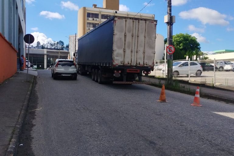 Agentes da Guarda de Trânsito de Brusque (GTB) estiveram no local realizando a sinalização e organizando o fluxo de veículos que segue em meia pista até a retirada do caminhão.