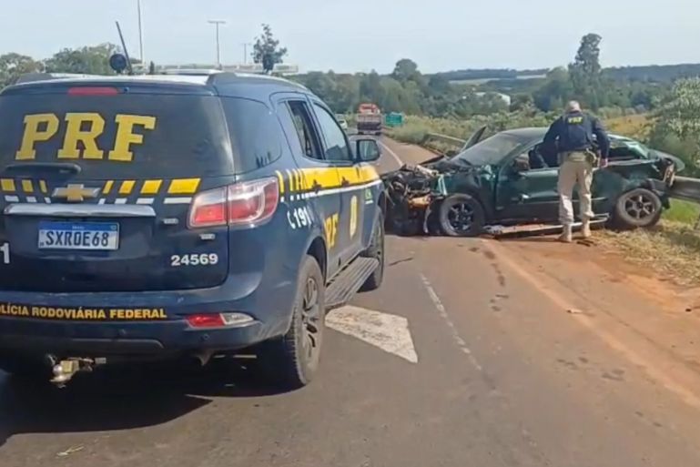 Durante a perseguição, o condutor perdeu o controle do carro. O veículo colidiu primeiro contra um caminhão e, na sequência, contra uma defensa metálica às margens da rodovia.