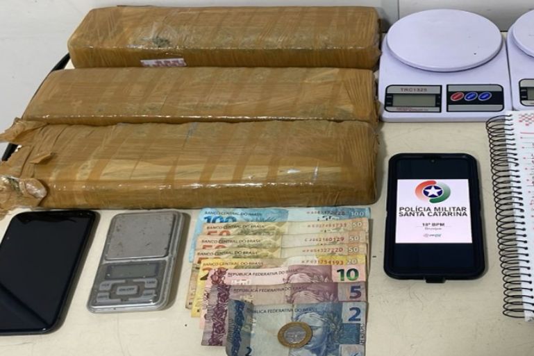 Além da droga, também foram apreendidos materiais relacionados à atividade criminosa, como balanças de precisão, anotações e valores em dinheiro.