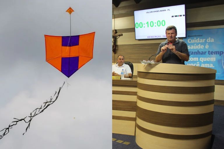 O caso foi discutido na sessão da Câmara de Vereadores nesta terça-feira (18), quando o vereador Valdir Hinselmann (PL) levou ao plenário uma pipa com linha de cerol para alertar sobre o risco.