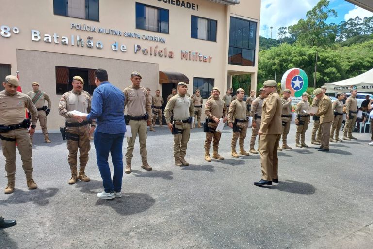 A cerimônia contou com a presença de autoridades militares, civis e representantes de entidades parcerias da polícia catarinense. Ao jornalismo da Rádio Araguaia, o comandante do 18º BPM, Tenente-Coronel Pedro Carlos Machado Júnior, destacou o empenho da corporação em prol da população: