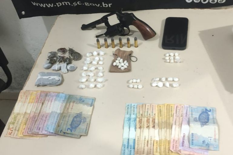 Uma operação da Polícia Militar movimentou o Centro de Tijucas na tarde desta quinta-feira (2). A ação, que ocorreu por volta das 16h na rua Alvina Simas Reis, resultou na prisão de dois homens, apreensão de um adolescente, além de drogas, dinheiro em espécie e uma arma de fogo.