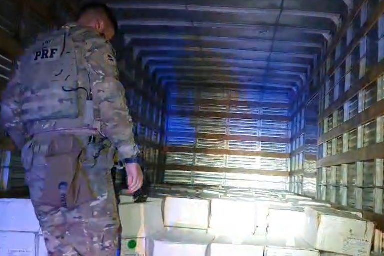 A apreensão aconteceu após policiais desconfiarem dos ocupantes de um automóvel que seguia pela rodovia, dois homens, de 57 e 42 anos. No veículo, foram encontrados cinco celulares que continham mensagens trocadas com o motorista do caminhão que levava o produto ilegal.