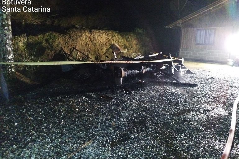 Na noite desta segunda-feira (4/8), um rancho de madeira foi totalmente consumido pelas chamas na rua João Assini, bairro Águas Negras, em Botuverá (SC). O Corpo de Bombeiros foi acionado por volta das 18h57min.
