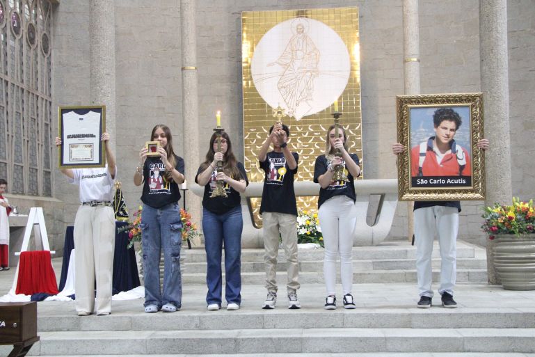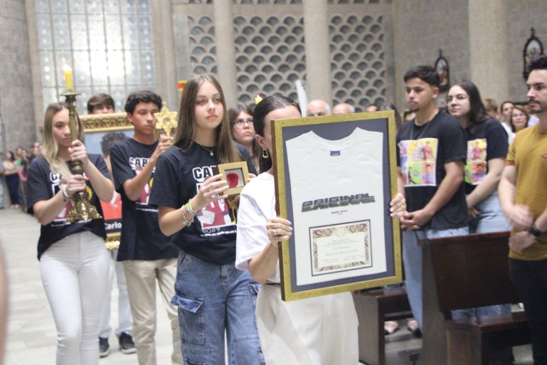 O religioso também recordou que recebeu as relíquias que estão peregrinando pelo Brasil diretamente dos pais de Carlo, em Assis. “Quando era reitor do Santuário do Despojamento, pedi uma recordação e recebi deles um fragmento da pele, fios de cabelo e a camiseta usada por Carlo. Nela está escrita a palavra ‘Original’ que inspira nossa peregrinação. Carlo sempre dizia ‘todos nascemos originais, mas muitos morrem como fotocópias’. Por isso, o tema da nossa jornada é ‘seja original, vista essa camisa’, um chamado à santidade autêntica”.