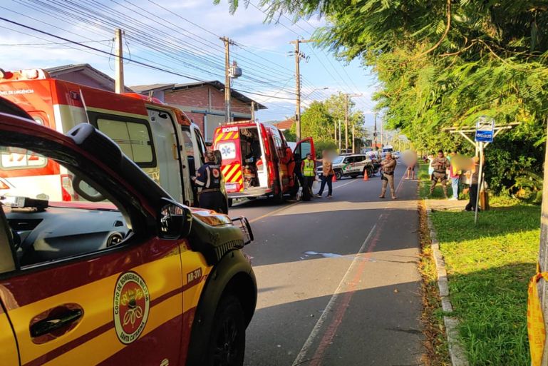 Quando as equipes chegaram, o ciclista estava caído na calçada, consciente, porém irresponsivo, apresentando grave lesão e fratura na face e no crânio. Após avaliação, a equipe médica decidiu pela condução ao Hospital Santa Isabel, em Blumenau.