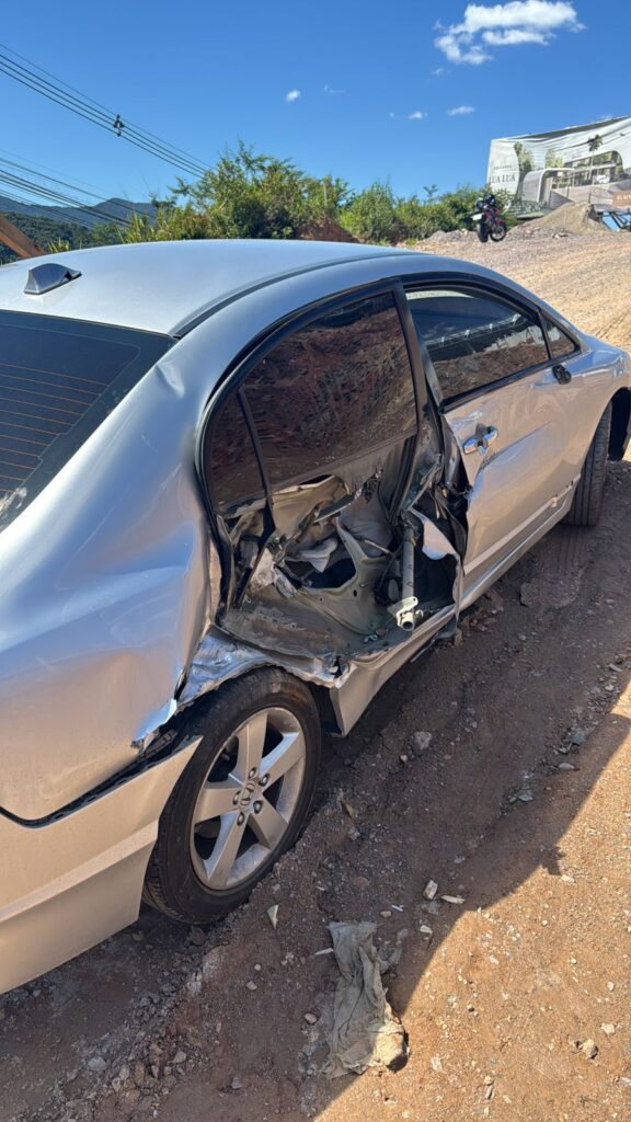 Na tarde desta quinta-feira (11), uma retroescavadeira colidiu com um Honda Civic na Rodovia Antônio Heil, no bairro Nova Brasília, em Brusque. O carro era por uma mulher e tinha como carona outra mulher duas crianças.