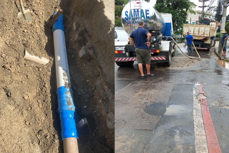 Após a identificação do ponto afetado, as equipes realizam a escavação e o conserto da tubulação. “É necessário interromper a rede do local para realizar o serviço e, por isso, ocorre o desabastecimento temporário da localidade”, completa Ruan.