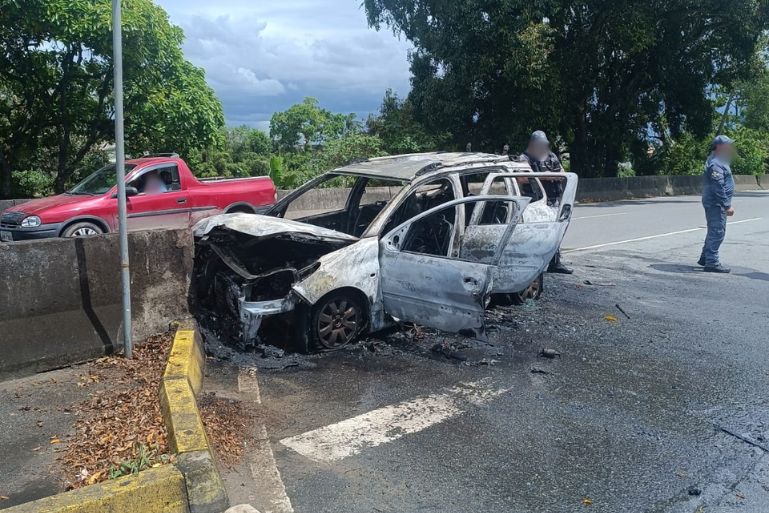 No local, as guarnições encontraram o carro já tomado pelas chamas e colidido frontalmente contra a barreira central da via. O veículo estava desocupado no momento da chegada das equipes.