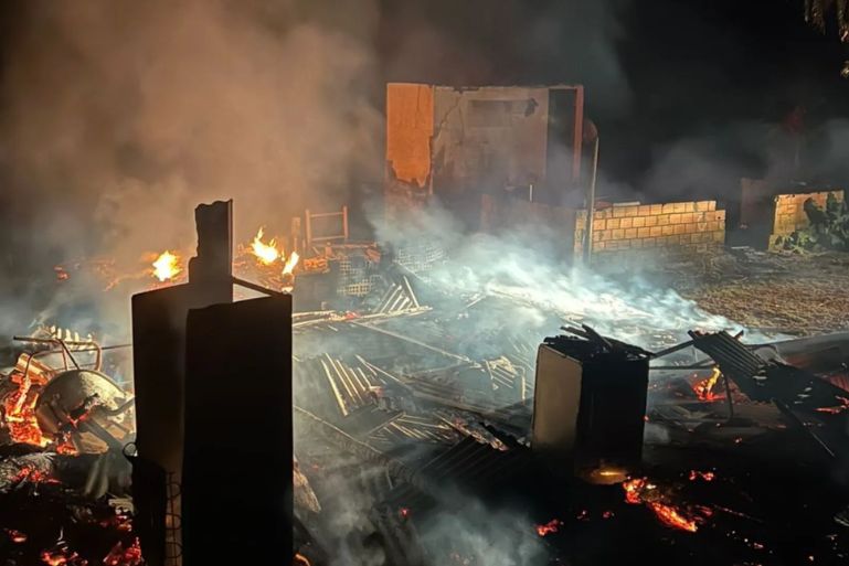 Fogo destruiu completamente a casa e um galpão no bairro