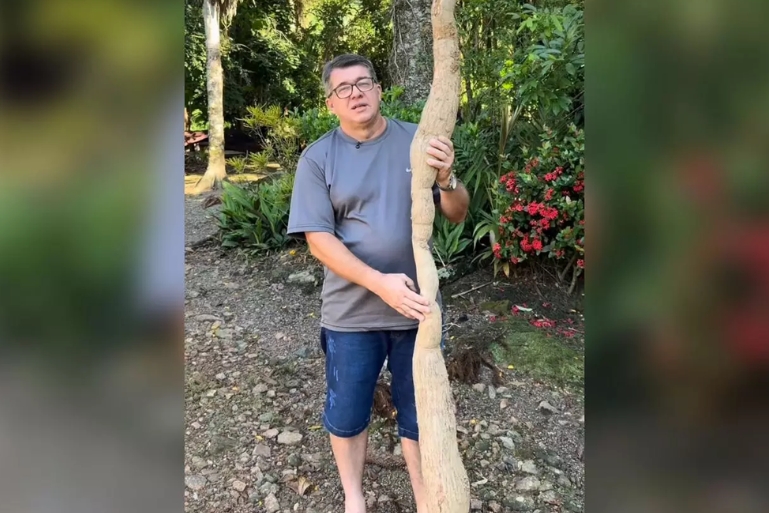 Aipim de mais de dois metros chama atenção em propriedade rural de Pomerode