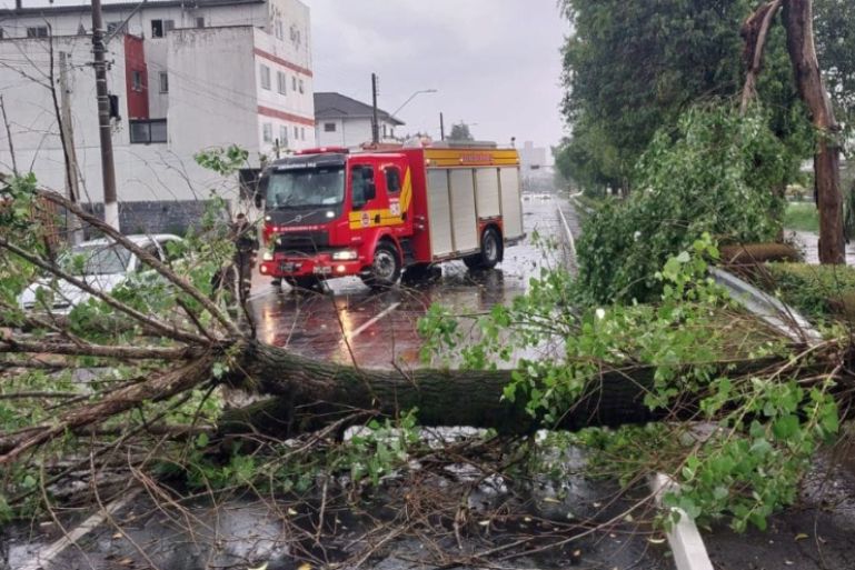 Outra obstrução foi registrada entre as ruas Ceará e Amapá, no bairro São Cristóvão, onde uma nova queda de árvore exigiu intervenção dos bombeiros.