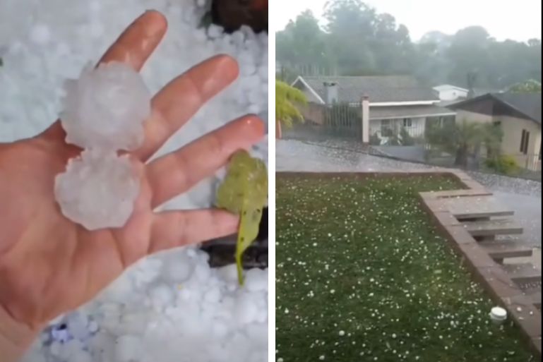 As pedras de gelo atingiram residências, veículos e estruturas comerciais, provocando destelhamentos, danos materiais e correria entre moradores. Vídeos feitos pela população mostram o tamanho das pedras, que em alguns pontos chegaram a ter dimensões comparadas a ovos de galinha.
