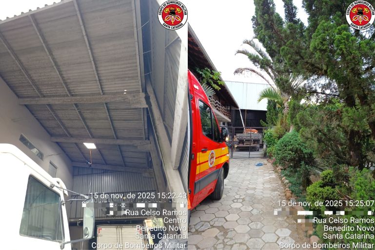 Uma ocorrência de acidente de trabalho com queda de nível mobilizou equipes do Corpo de Bombeiros Militar na tarde deste sábado (15), na Rua Celso Ramos, no Centro de Benedito Novo.