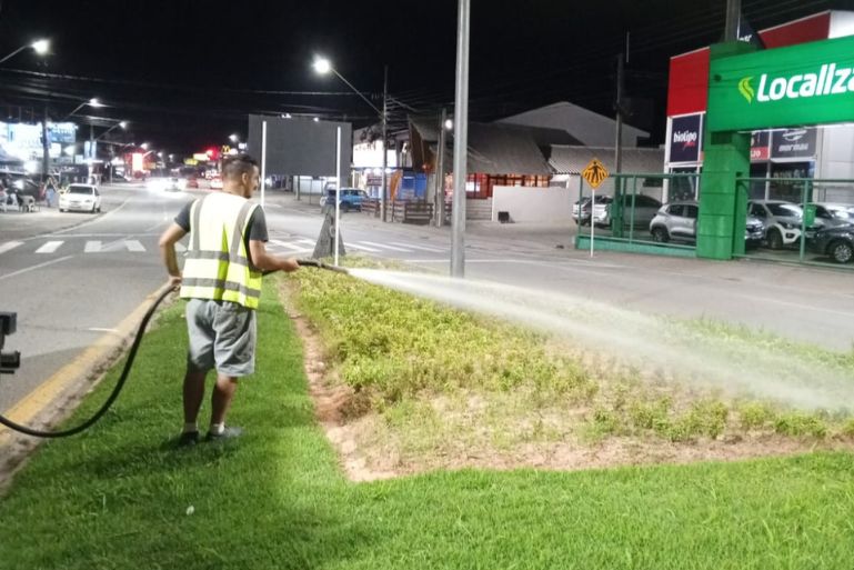Ainda no sábado, as equipes executaram serviços de hidrossemeadura em três frentes na região da Beira Rio, além de ações de rega e manutenção em 11 pontos, incluindo rótulas, praças e canteiros distribuídos pela cidade.