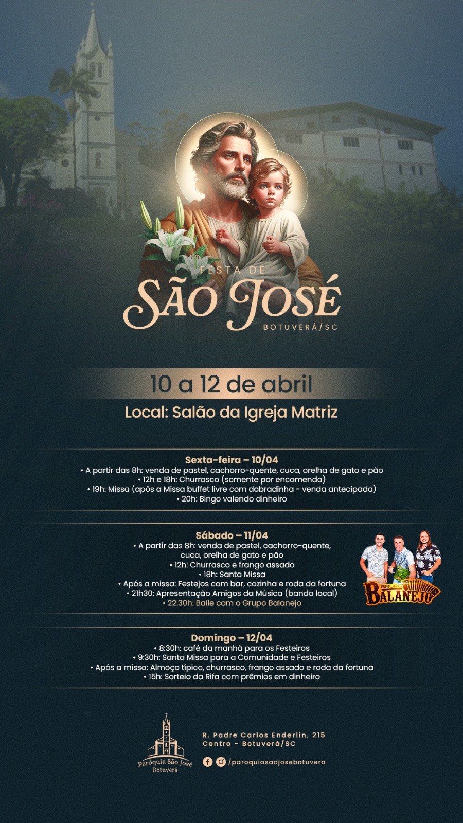 Botuverá se prepara para celebrar a tradicional Festa de São José, que será realizada entre os dias 10 e 12 de abril, no Salão da Igreja Matriz, no Centro do município.