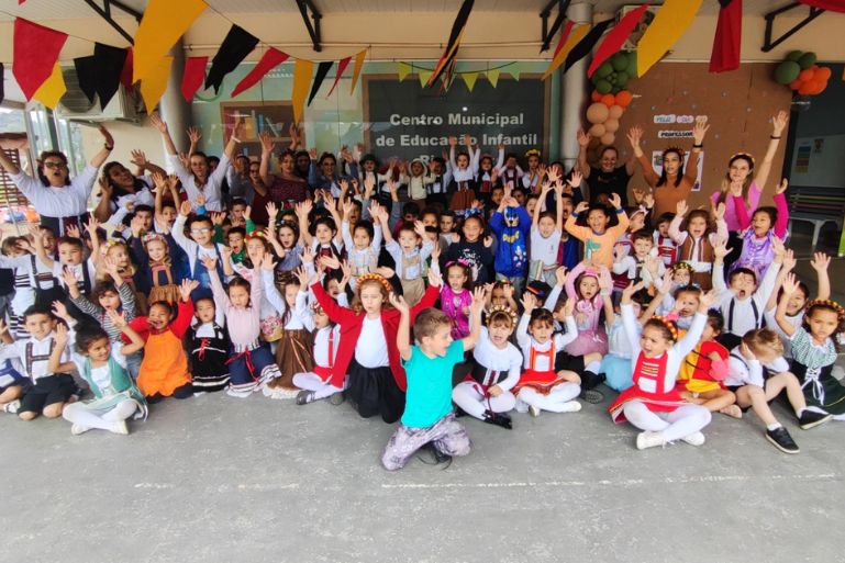 No CMEI Rio Branco, os pequenos se divertiram ao participar das atividades temáticas. Dançando ao som de músicas germânicas, típicas das festas de outubro em Brusque e em diversas cidades de Santa Catarina, os sorrisos foram garantidos. A alegria ganhou reforço na decoração preparada com carinho pelos professores e no cuidado dos pais, que levaram as crianças trajadas a caráter, dando ainda mais cor e graça à celebração.