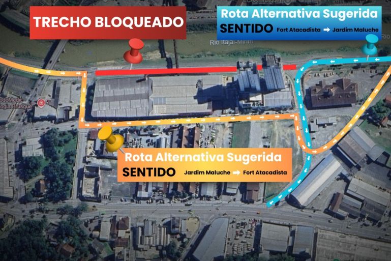 Os condutores que seguem do Fort Atacadista em direção ao Jardim Maluche deverão utilizar rota alternativa ao lado da Rodoviária, acessando a rua Evaldo Bohn. De lá, poderão seguir até a Rodovia Antônio Heil para dar continuidade ao trajeto.