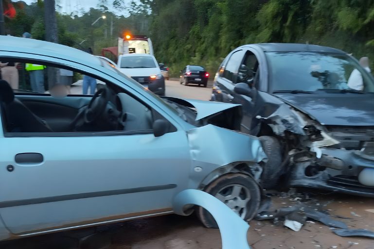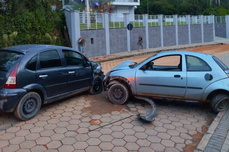 Uma colisão frontal foi registrada no início da noite de sexta-feira (26), em Guabiruba. A ocorrência foi atendida pelo Corpo de Bombeiros por volta das 18h50, na rua Antônio Fischer, em frente à empresa Chocolates Tia Lice. A batida envolveu um automóvel Ford Ka e um Citroën C3. No total, seis pessoas foram atendidas no local.