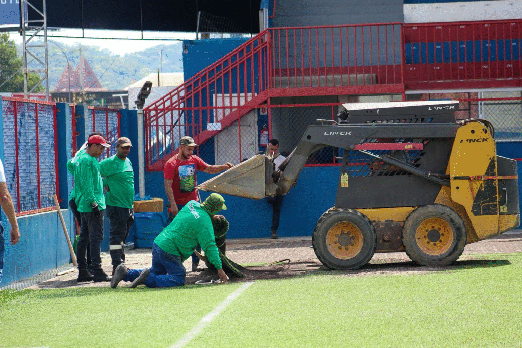 A obra está a cargo da Prograss, maior fabricante de gramados sintéticos da América Latina. O investimento é estimado em cerca de R$ 3,7 milhões e inclui a instalação de um sistema sintético híbrido de última geração, com shockpad e cortiça, que receberá o selo máximo da Fifa, o Quality Pro. Valor será arcado pelo Carlos Renaux e patrocinadores.