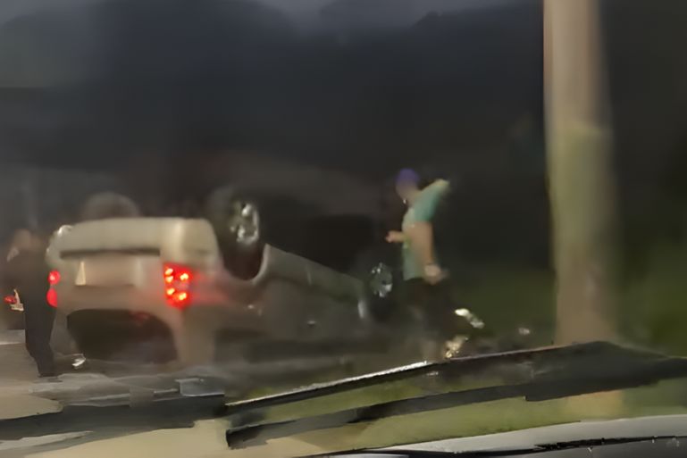 Conforme imagens recebidas pela equipe de jornalismo da Rádio Araguaia, é possível observar um automóvel com as rodas para o ar e algumas pessoas em torno do local da ocorrência.