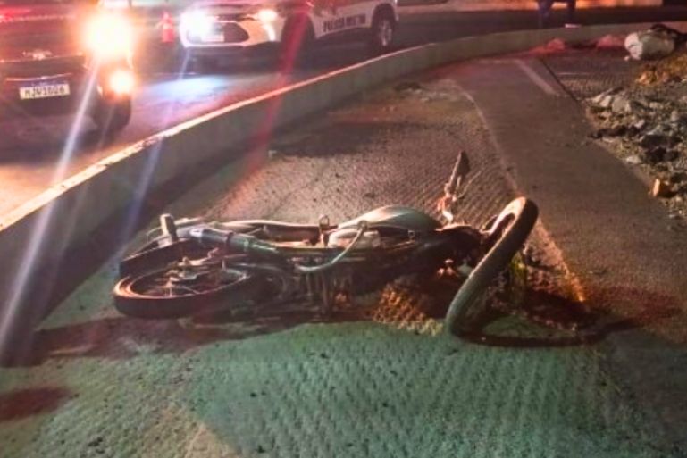 No local, a guarnição constatou que um motociclista (26) havia colidido contra a mureta de concreto, vindo a sofrer lesões gravíssimas.