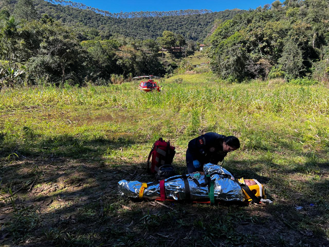 A ocorrência contou com o helicóptero Arcanjo-03, equipes do Corpo de Bombeiros de Botuverá e Brusque e apoio de uma viatura da Polícia Militar.