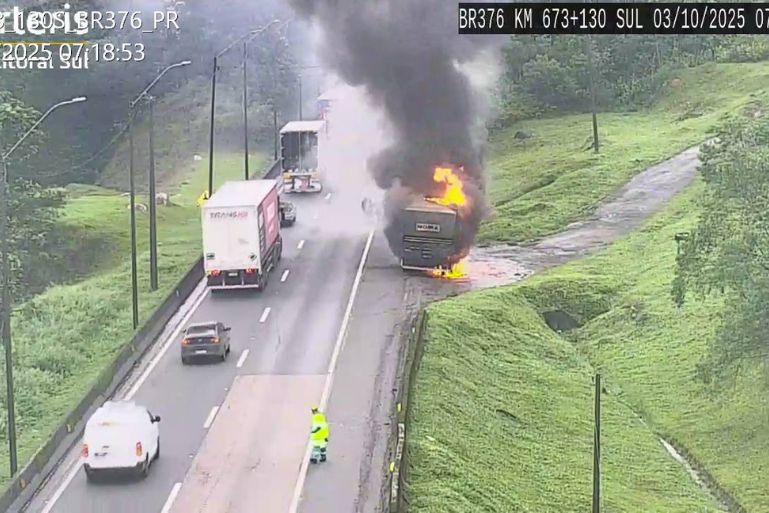 Um incêndio em uma carreta carregada com grãos de milho mobilizou o Corpo de Bombeiros na manhã desta sexta-feira (3), no km 673 da BR-376, sentido Sul, em Garuva. A ocorrência foi registrada por volta das 7h44.
