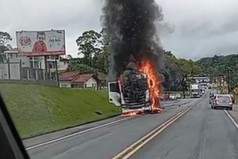 As imagens que circularam nas redes sociais mostram a cabine do veículo totalmente tomada pelas chamas. O fogo consumiu toda a parte frontal da carreta, que ficou completamente destruída. O incêndio assustou moradores e motoristas que passavam pela via.