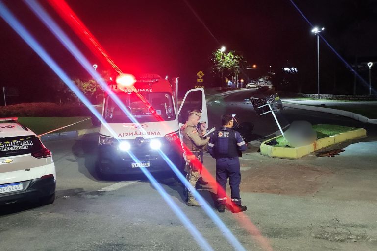 Segundo a Polícia Militar, a motocicleta YAMAHA/NMAX 160 colidiu contra o canteiro central da via e, em seguida, bateu em duas placas de sinalização. O impacto foi tão forte que as duas pessoas que estavam na moto foram arremessadas a uma distância significativa.