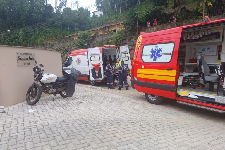 Um grave acidente foi registrado por volta das 17h28 desta sexta-feira (9), na rua Alberto Knop, no bairro Jardim Maluche, em Brusque. Um motociclista que conduzia uma Honda CG 150 Job, com placas de Brusque, colidiu violentamente contra o muro de uma residência.