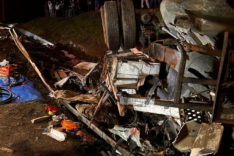 De acordo com os bombeiros, o veículo estava de cabeça para baixo, com o peso da carga e da estrutura do caminhão sobre o corpo do motorista, que se encontrava em encarceramento tipo 2. Um poste de iluminação pública também foi atingido e caiu sobre o caminhão, dificultando ainda mais o acesso à vítima. Felizmente, o poste já estava desenergizado no momento do atendimento.