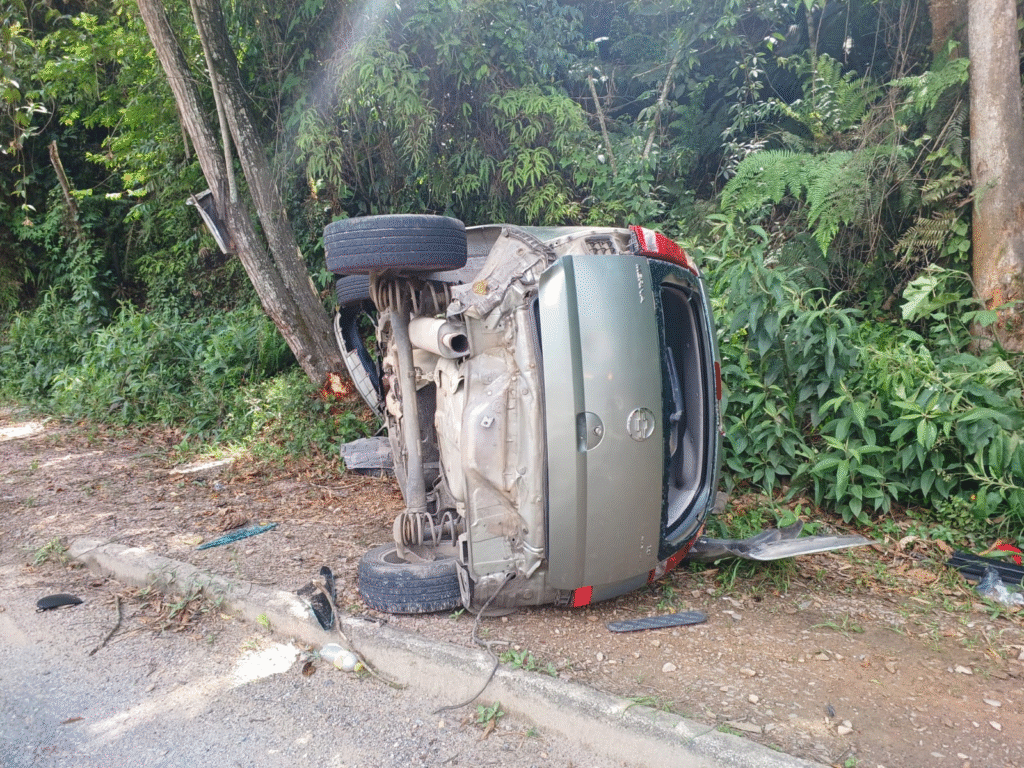 A motorista apresentava escoriações, recebeu atendimento no local e foi encaminhada ao pronto-socorro do Hospital Azambuja. De acordo com as informações apuradas, o carro atingiu uma árvore antes de capotar, ficando tombado sobre a calçada.