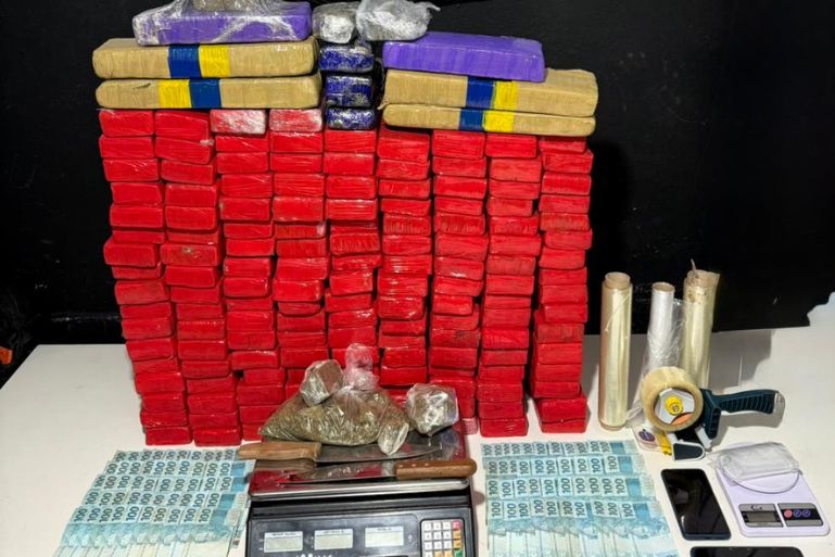 Com base nas informações obtidas, as equipes seguiram até Joinville, onde, com o apoio de cão policial localizaram em um fundo falso no banheiro de uma residência aproximadamente 135 quilos de maconha, além de R$ 8.100 em dinheiro, duas balanças de precisão e materiais usados para embalar os entorpecentes.