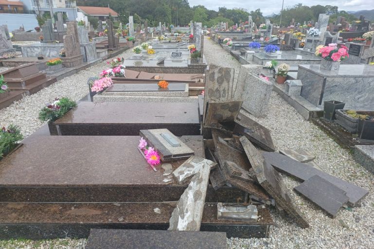Na manhã deste domingo (9), moradores de Brusque foram surpreendidos com um cenário de destruição no cemitério Parque da Saudade. Ao menos seis túmulos foram alvo de vandalismo durante a madrugada. O caso gerou comoção entre os visitantes, que foram ao local para prestar homenagens aos seus entes queridos e se depararam com lápides quebradas e sepulturas arrancadas.