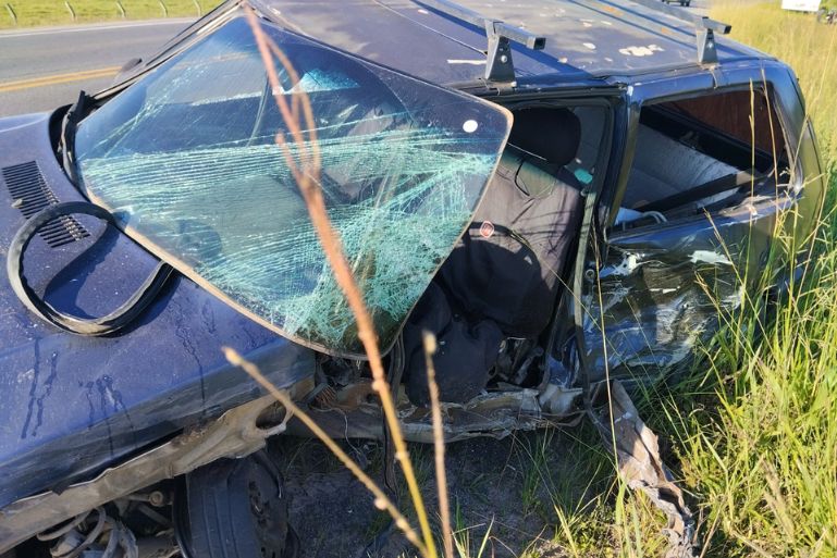 O outro veículo, entretanto, apresentava uma situação mais grave: um homem adulto foi ejetado para fora do carro, caindo a cerca de quatro metros de distância após o impacto.