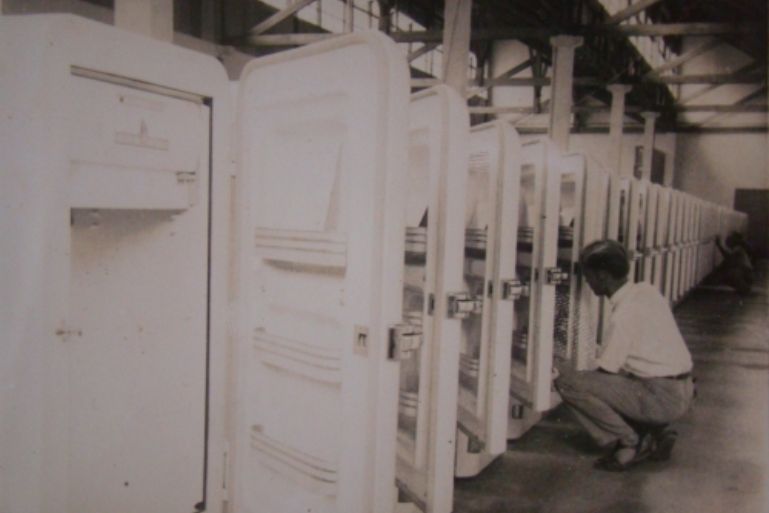 Com chapas dobradas à mão, cálculo do cunhado Oscar Bachmann e muito teste, nasceu a primeira geladeira produzida no Brasil.