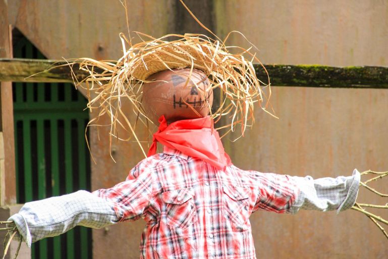 Durante a ação, o recinto dos cachorros-do-mato foi decorado com espantalhos, abóboras e caixões de papelão, em alusão ao Dia das Bruxas, comemorado na sexta-feira (31).